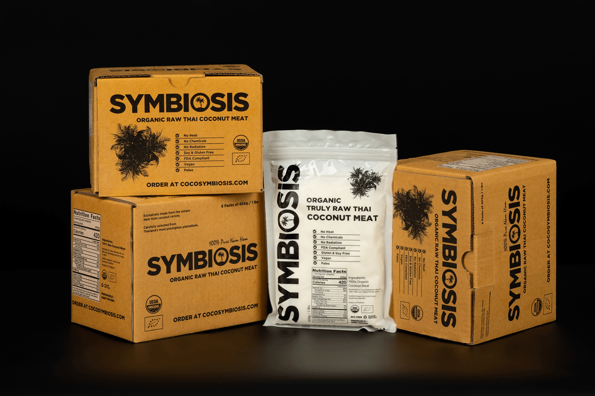 O pedido é composto por três caixas de carne de coco crua. Peso líquido do produto para cada caixa: 2,7 kg (6 lbs). Dimensões para cada caixa: 14 cm (5,5 polegadas) x 16,5 cm (6,5 polegadas) x 20 cm (8 polegadas)
